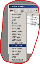 2. Interface > Add > PPPoE Client komutunu veriyoruz.