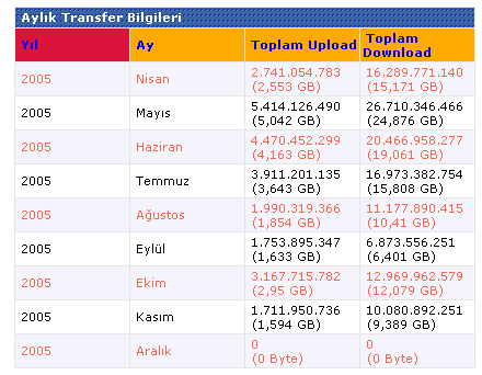 Bu gün Nadi’yi kızdırmış Türktelekom amcam kota istatistiklerini gönderdi artık hakkını vericem diyo sınırsız 256 kbps bağlantının.